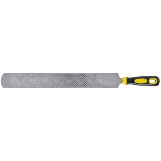 Doppelseitige Profi-Reibe aus T12A-Stahl. Grobe Zähne auf der einen Seite und die feine auf der anderen Seite. Gummigriff mit einer rutschfesten Einlage.