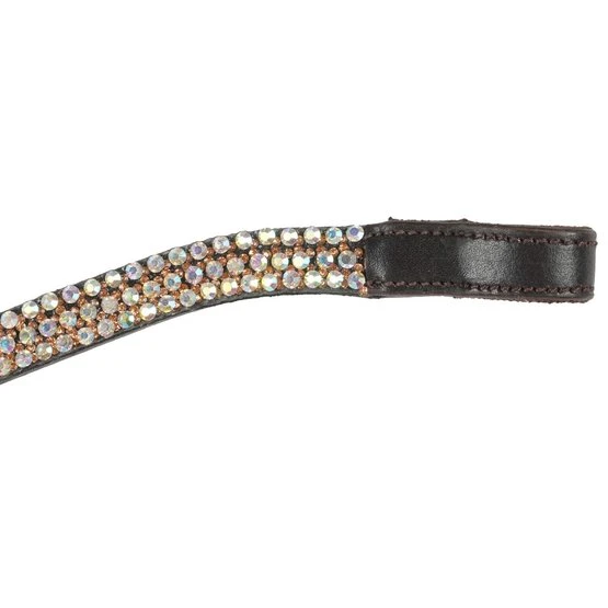 Beleben Sie Ihr Lieblingszaumzeug mit diesem auffälligen Stirnband. Die Schlaufenenden sind mit elastischen Einsätzen ausgestattet, die sich leicht an die meisten Zügel anpassen lassen.
