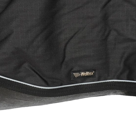 Perfekt für jeden Tag, vor allem bei schlechtem Wetter! Die Nierendecke besteht aus 600 Dernier Ripstop, ist wasserdicht mit verklebten Nähten und atmungsaktiv. Die Innenseite der Decke ist mit dem Welltex®- Gewebe ausgestattet, welches die Blutzirkulation stimuliert und Verletzungen vorbeugen kann. Der reflektierende Schriftzug, sowie auch die Kordel sorgen für eine gute Sichtbarkeit bei schlechten Lichtverhältnissen. Das Design wurde kreiert um eine gute Passform rund um den Sattel zu gewährleisten. Der Beinausschnitt für den Reiter, welcher über oder unter dem. Sattelblatt getragen werden kann, erlaubt weiterhin den engen Kontakt zum Pferd. Die Decke ist einfach aufzulegen und abzunehmen.