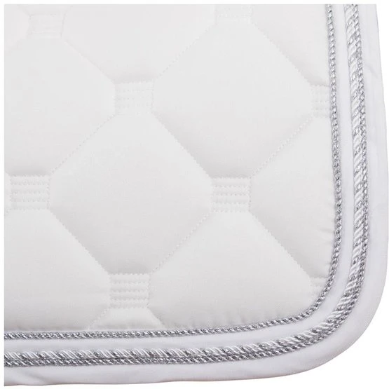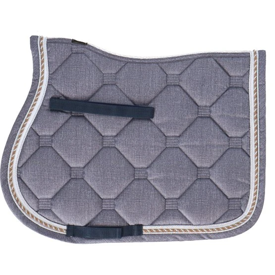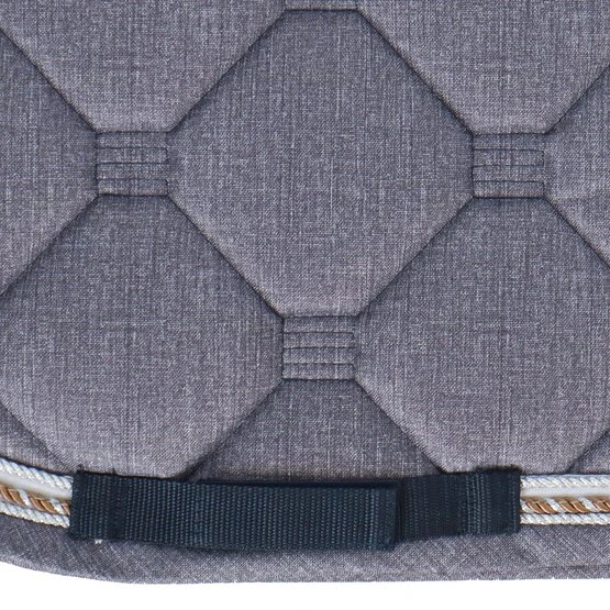 Stylische Schabracke aus Polycottongemisch mit einer Airflow-Rückennaht um die Luftzirkulation anzuregen. Die Schabracke hat eine 400 g Füllung, 8 mm Schaumpolster und ein Ciba behandeltes (feuchtigkeitsregulierendes) Polyester-Airflow-Futter. Es hat einen Einfass aus Airflow-Polyester und eine 3-reihige Silberkordel. Gurtstrippen- und Sattelgurtbefestigung mit Kletverschluss.