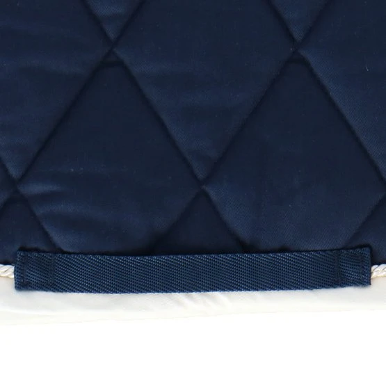 Die Schabracke ist mit einer oder zwei Kordelpaspeln verziert und enthält eine verstellbare Sattelschlaufe mit Klettverschluss.