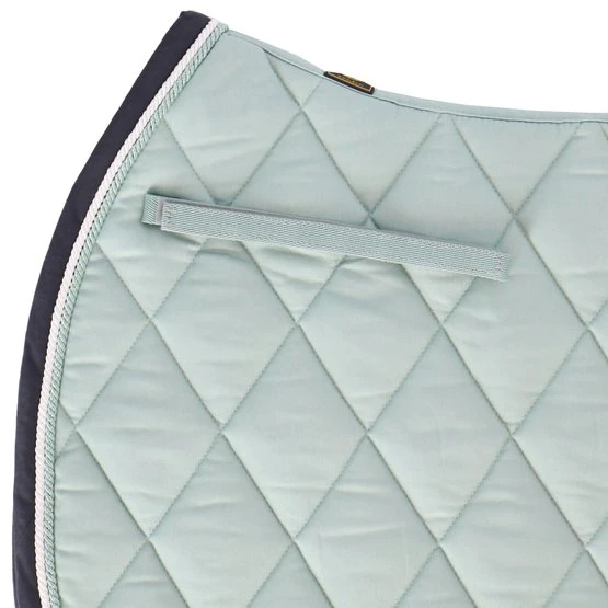 Die Schabracke ist mit einer oder zwei Kordelpaspeln verziert und enthält eine verstellbare Sattelschlaufe mit Klettverschluss.