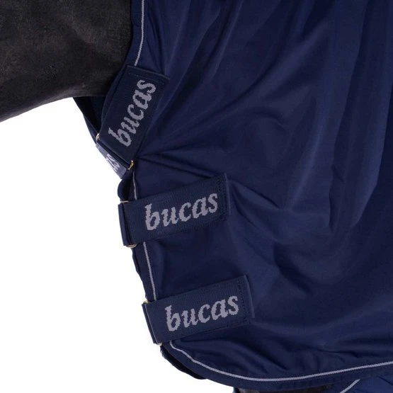 Trocken bleibender Stoff, der das Pferd jederzeit trocken hält. Die Decke hat Schulterfalten, die dafür sorgen