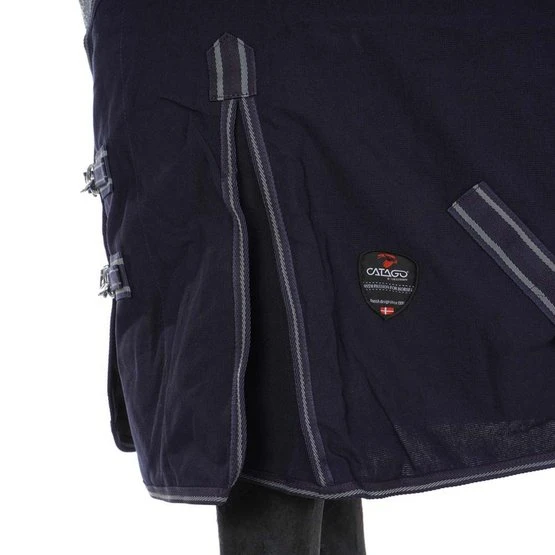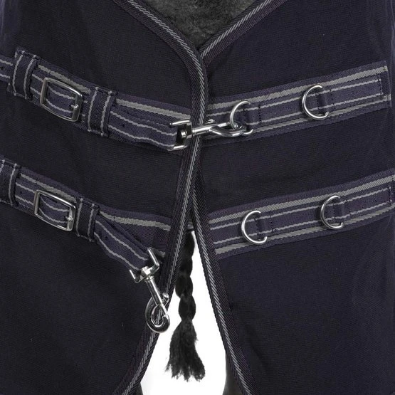 Sommerteppich aus starkem Baumwollstoff mit doppeltem Frontverschluss, Schulterzwickel, Kreuzverzierungen, elastischen Märchenriemen und Märchenklappe.