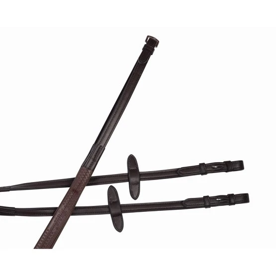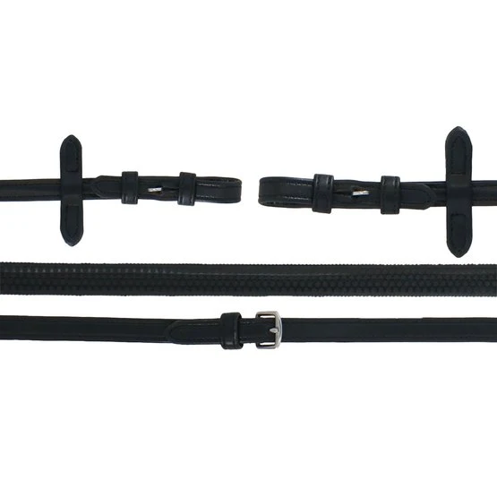 Die Collegiate Syntovia + Rubber Reins sind hochwertige Kunstledergummizügel mit Haken und Ständern für Haltbarkeit und Sicherheit.