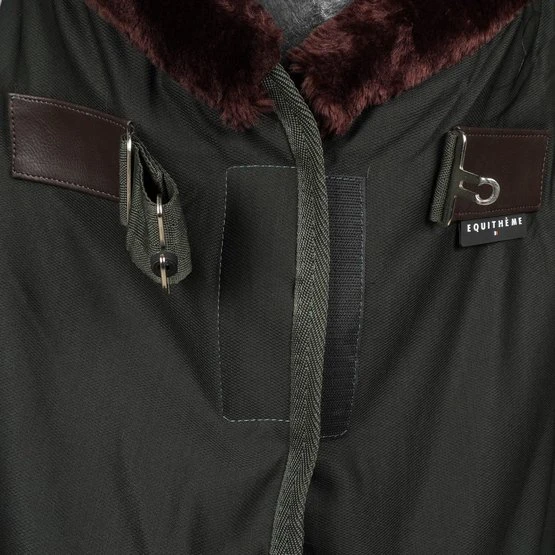 Trockendecke, die einen schnellen Feuchtigkeitstransport ermöglicht, ideal nach der Arbeit oder nach dem Waschen. Dank der niedrigen Kreuzgurte, des Brustverschlusses, des Nylonfutters an der Brust und insbesondere des Kragens aus synthetischem Teddy-Schaffell passt es sich perfekt dem Körperbau und dem Komfort Ihres Pferdes an. Zusammensetzung: 100 % Polyester.