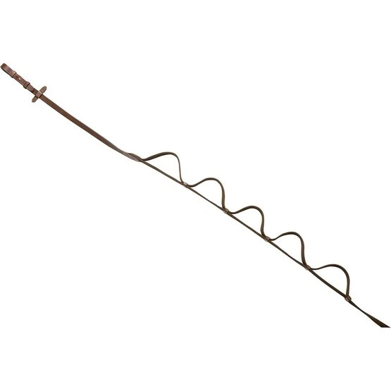 Mit Haken, 5 Griffen und Lederstopfen mit weißen Nähten.