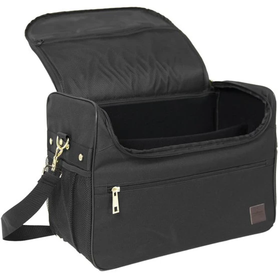 Das Innere der Tasche ist mit starken Kletttrennwänden anpassbar. Dadurch können Sie die Tasche perfekt an Ihre Bedürfnisse anpassen. Im Hauptfach können Pinsel, Sprühflaschen und andere Reinigungsmittel verstaut werden. Kleinere Gegenstände können Sie in einem separaten Fach auf der Innenklappe verstauen. An der Vorderseite der Tasche befindet sich ein großes Fach, in dem Sie Gegenstände wie Gummibänder, Nadel und Faden verstauen können. Außerdem befindet sich auf beiden Seiten eine dehnbare Netztasche. Die Putztasche wird mit einem starken Reißverschluss geschlossen und hat einen abnehmbaren und verstellbaren Schultergurt für einen einfachen und bequemen Transport. Die Seiten der Tasche sind verstärkt, um den Bürsten zusätzliche Festigkeit und Schutz zu bieten. Der Pflegebeutel ist 42,5 cm x 32,5 cm x 20 cm (L x H x B) groß.
