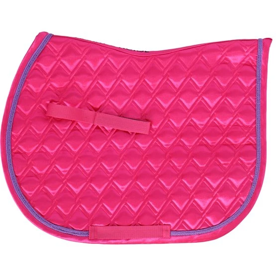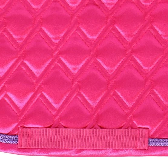 Satin-Schabracke mit luxuriöser 3-facher Zierkordel rundum. Ausgestattet mit Gurt- und Sattelschlaufen. 100% Polyester.