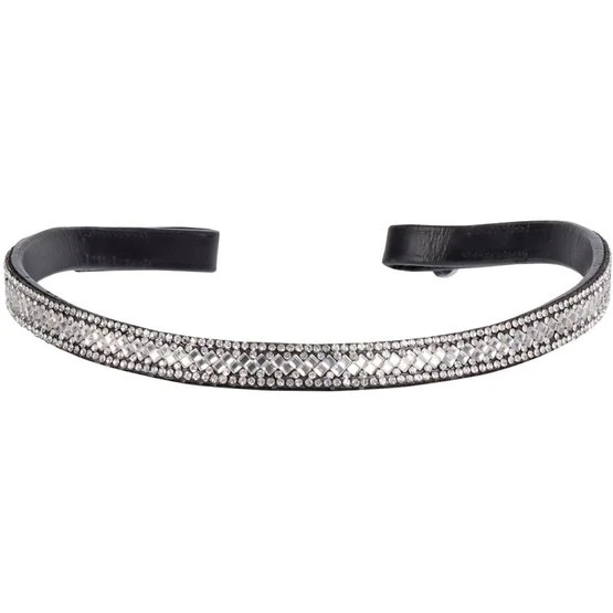 Lederstirnband mit 3 Reihen Kristallen, davon die mittlere Reihe aus quadratischen Kristallen.