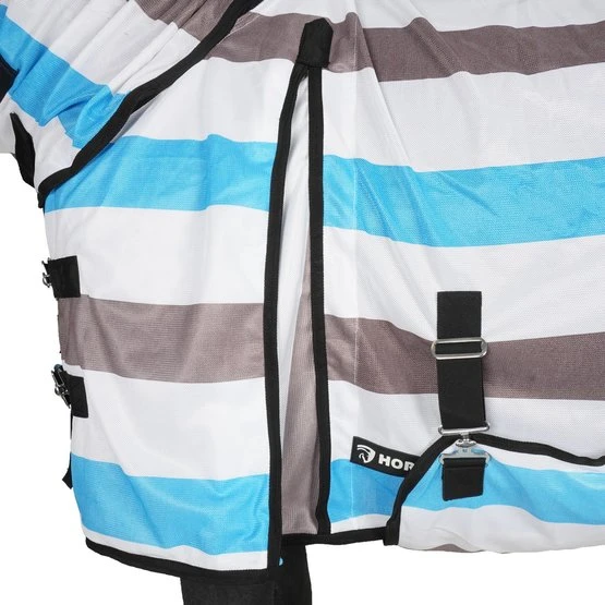 Robuste Fliegendecke aus ballistischem Netz mit festem Hals und Streifenmuster.