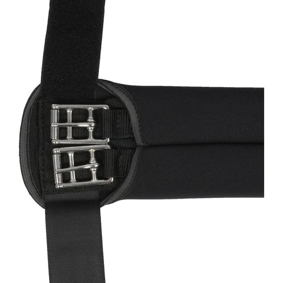 Umfang aus weichem Neopren, mit Edelstahl-Rollschnallen und D-Ring in der Mitte für den Einsatz von Hilfszügeln