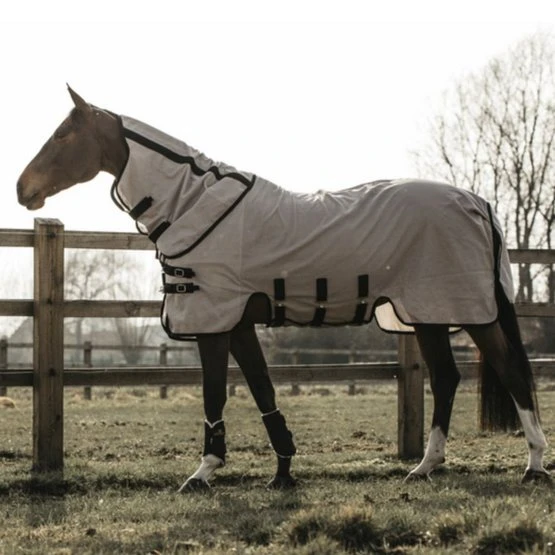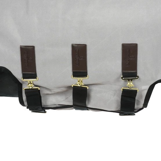 Die Fliegendecke bietet hervorragenden Schutz vor jedem Insekt. Dadurch eignet sich die Decke sehr gut für Pferde mit empfindlicher Haut. Die Decke ist mit einem speziellen Dreipunktverschluss ausgestattet. Dieser Verschluss reduziert den Druck auf Brust und Widerrist und sorgt für Komfort beim Grasen. Für zusätzlichen Schutz gibt es ein Nackenteil an der Decke.