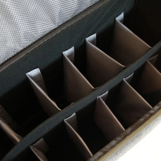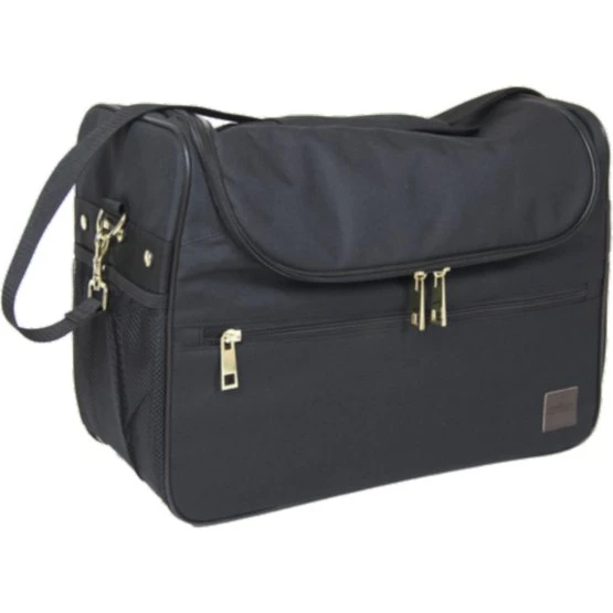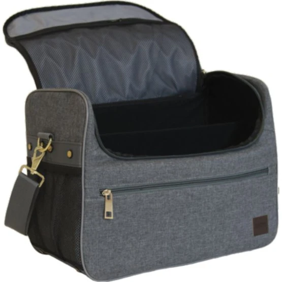 Das Innere der Tasche ist mit starken Kletttrennwänden anpassbar. Dadurch können Sie die Tasche perfekt an Ihre Bedürfnisse anpassen. Im Hauptfach können Pinsel, Sprühflaschen und andere Reinigungsmittel verstaut werden. Kleinere Gegenstände können Sie in einem separaten Fach auf der Innenklappe verstauen. An der Vorderseite der Tasche befindet sich ein großes Fach, in dem Sie Gegenstände wie Gummibänder, Nadel und Faden verstauen können. Außerdem befindet sich auf beiden Seiten eine dehnbare Netztasche. Die Putztasche wird mit einem starken Reißverschluss geschlossen und hat einen abnehmbaren und verstellbaren Schultergurt für einen einfachen und bequemen Transport. Die Seiten der Tasche sind verstärkt, um den Bürsten zusätzliche Festigkeit und Schutz zu bieten. Der Pflegebeutel ist 42,5 cm x 32,5 cm x 20 cm (L x H x B) groß.