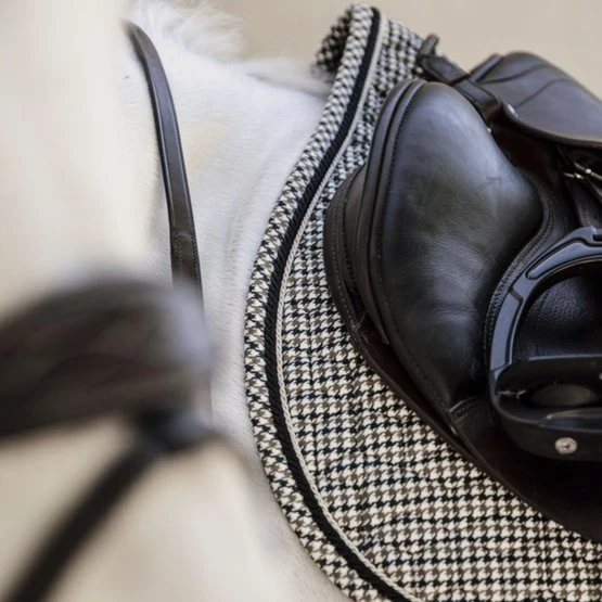 Entscheiden Sie sich für einen grafischen und schicken Look mit dieser Schabracke mit Hahnentrittmuster.