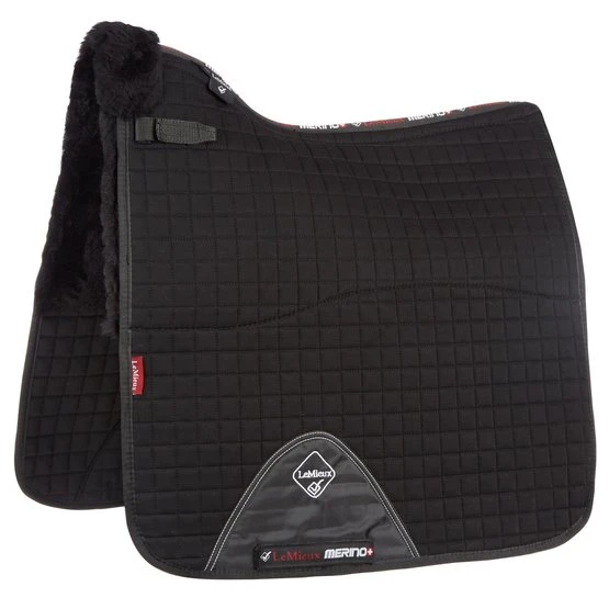 Diese Dressurdecken sind zur Hälfte mit 100% natürlichem australischem Merinolammfell gefüttert. Die Wolle ist viel dichter und weicher als die weit verbreitete ältere Schafwolle. Der Schwanenhals sorgt dafür, dass der Widerristdruck entlastet wird und ein idealer Luftstrom möglich ist. Es ist bekannt, dass es für Pferde nichts Besseres gibt als natürliche Wolle – sie fördert die Durchblutung, ist voll atmungsaktiv, sorgt für eine optimale Temperatur im Sommer und Winter, reguliert die Luftfeuchtigkeit und wirkt antibakteriell. Die Wolle sorgt auch für eine perfekte Druckverteilung auf dem Pferderücken.