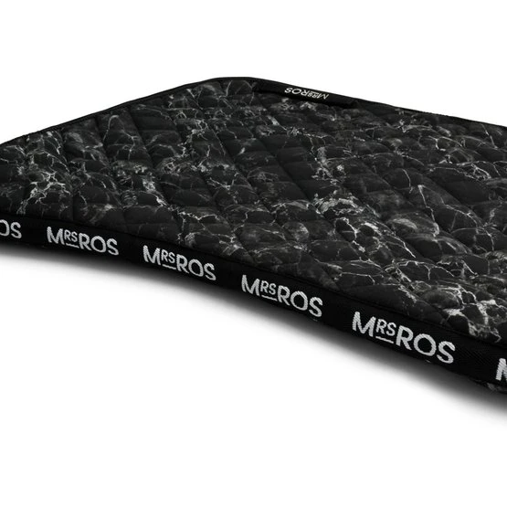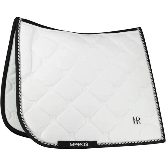 Unsere Charmer-Dressurschabracke verfügt über ein Rautenmuster mit durchgehend aufgesticktem Mrs. Ros-Logo.