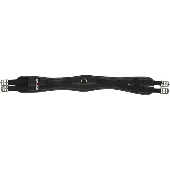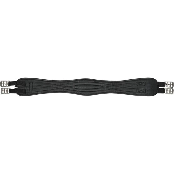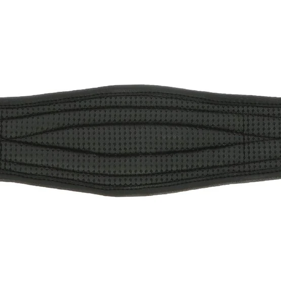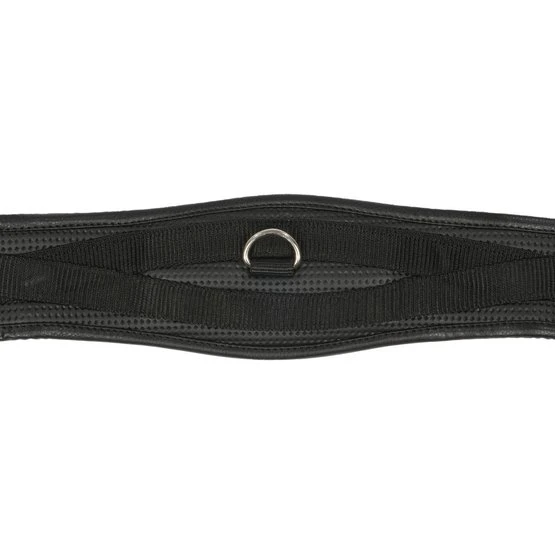 Vorgeformter Umfang aus Wabenvinyl gefüllt. Der zentrale Gelbereich sorgt für eine bessere Verteilung auf die Druckpunkte und erhöht den Komfort für das Pferd. Ausgestattet mit Zentralring und 2 Polypropylenbändern an den Seiten zur Befestigung von Hilfszügen. Rollschnallen aus vernickeltem Stahl, einseitig elastisch.
