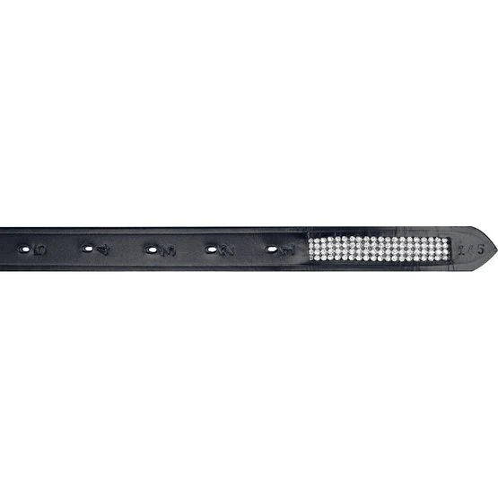 Aus Büffelleder mit vierreihig eingelegten Strasssteinen an den Enden. Edelstahlschnallen.