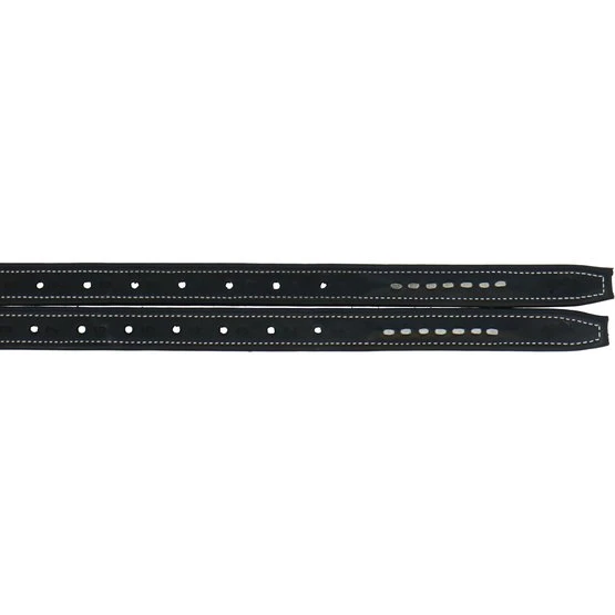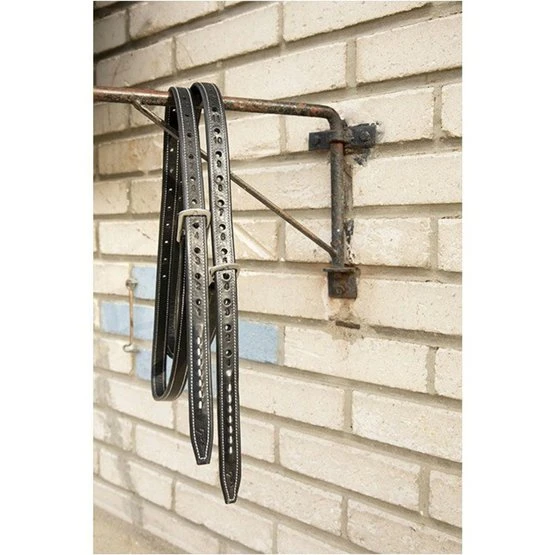 Die Steigbügelriemen der Kollektion PENELOPE sind aus Leder und die Enden jeweils mit einer Sattelziernaht versehen. Neben den Löchern sind Zahlen eingestanzt. Sie sind aus mit Nylon unterlegtem Leder.