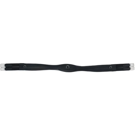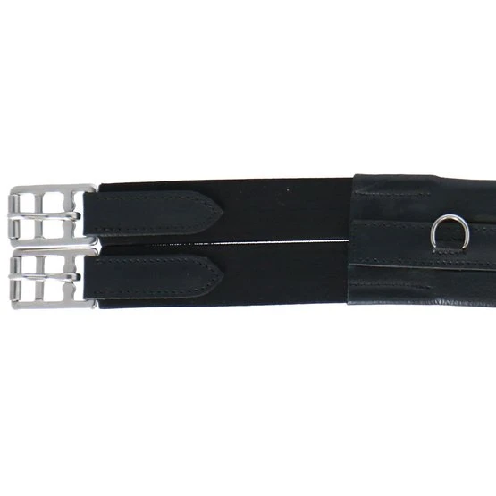 Anatomisch geformter Ledergurt mit Elastik-Einsatz an beiden Enden, sowie einem D-Ring für Hilfszügel in der Mitte. Die anatomische Form des Gurtes gibt dem Pferd maximale Bewegungsfreiheit. Die elastischen Einsätze bieten zusätzlichen Komfort und erleichtern das Nachgurten. Der Gurt hat einen extra D-Ring an beiden Enden für Hilfszügel. Mit Edelstahl-Rollenschnallen.