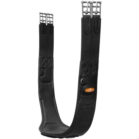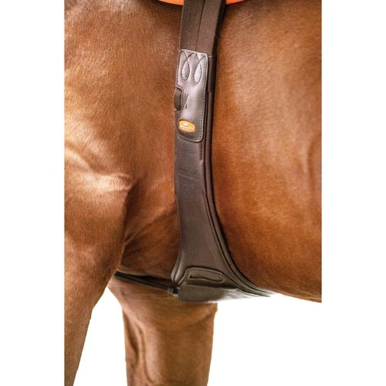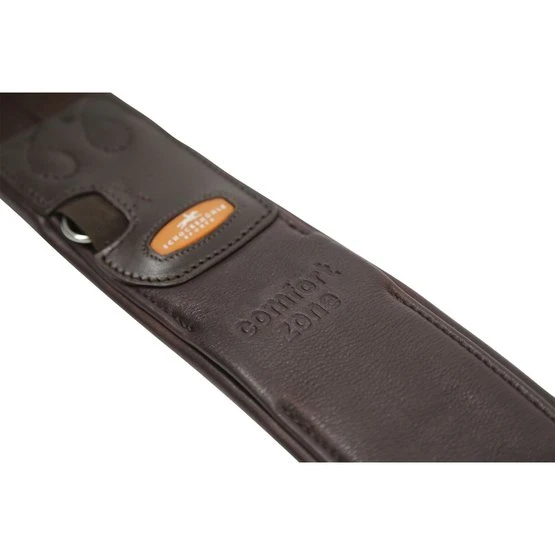 Portland ist ein neuer, anatomisch geschnittener Langgurt von Schockemöhle Sports. Der flach gearbeitete Teil des Gurtes im Bereich der Ellenbogen des Pferdes ermöglicht maximale Bewegungsfreiheit. Zudem verteilt der breitere, etwas festere Mittelteil des Gurtes den Druck am Brustkorb jetzt noch besser. Der Langgurt Portland besteht aus genarbtem Softleder und verfügt in der Mitte über einen großen Karabiner, der das Einschnallen des Vorderzeugs erleichtert. Für noch mehr Sicherheit abgedeckt werden kannder Karabiner mit der großen Lederklappe. Zwei seitliche D-Ringe bieten noch mehr Optionen zum Verschnallen von Hilfszügeln. Der in black/silver und brown/silver verfügbare Sattelgurt kommt mit beidseitigem dreilagigen Elastik und massiven Rollenschnallen mit weicher Polsterung daher.