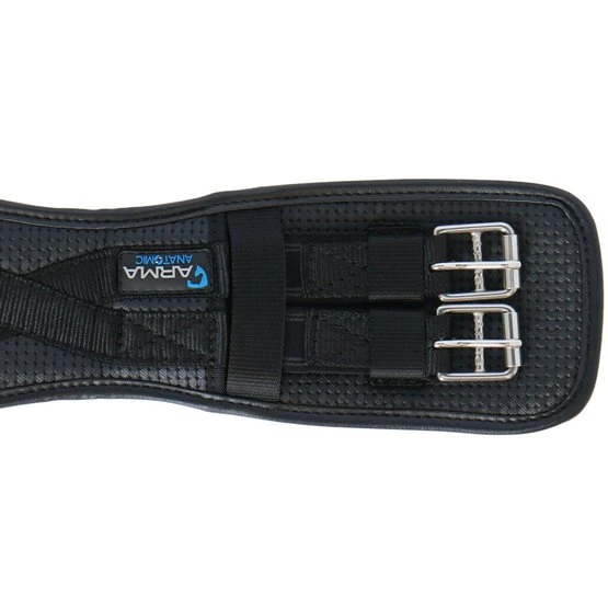 Synthetischer Konturumfang mit Anti-Scheuer-Kissen-Material ausgekleidet – diese strukturierte Oberfläche erhöht den Luftstrom und reduziert so die übermäßige Schweißbildung zum Schutz vor Scheuern. Geformt für Freiheit um die Ellbogen mit Rollschnallen zum einfachen Festziehen.
