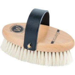 Mit dieser handlichen Kopfbürste mit 100% dichtem, extra weichem Ziegenhaar gönnen Sei ihrem Pferd eine besonders wohltuende Schmuseeeinheit, die es im Kopfbereich besonders genießt. Sie ist perfekt fürs Finish und verleiht dem Fell einen wunderschönen Glanz. Das besonders weiche und glatte Ziegenhaar hinterlässt kein Staubkorn auf dem Pferdefell und ist in der Glanzwirkung dem Lammfell überlegen. Naturmaterialien erzeugen keine elektrostatische Aufladung.